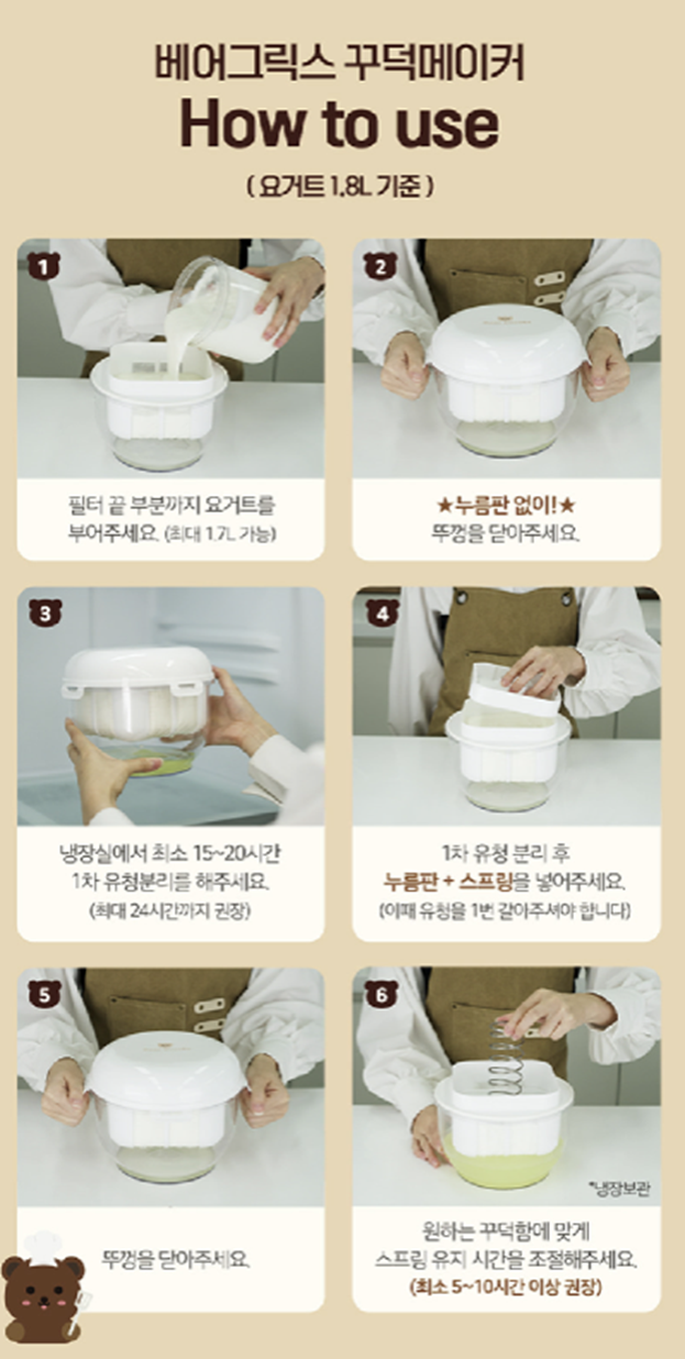 📌 장점 : 내열유리사용으로 냄새 및 변색방지, 큰 용량, 유청 제거작업 필요없음, 꾸덕함 정도 조절 가능